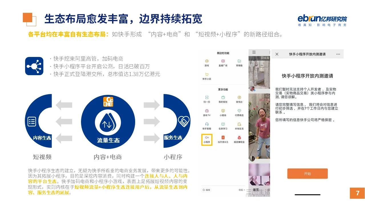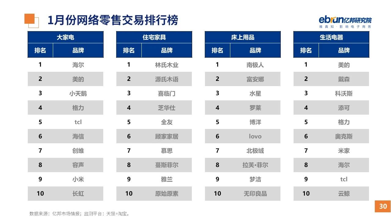 縱觀2021年1月,各平臺豐富自有生態(tài)布局,如淘寶直播(點淘)加入短視頻模式、騰訊重押視頻號、快手加碼電商和小程序、抖音推出支付等;視頻內(nèi)容成為各平臺未來重點發(fā)力方向;“九不得”新規(guī)發(fā)布后社區(qū)團購仍熱情不減;國家和市場對互聯(lián)網(wǎng)巨頭和電商相關(guān)消費加大監(jiān)管力度……你信和不信,你知道和不知道的,都在這份億邦動力研究院正式發(fā)布的